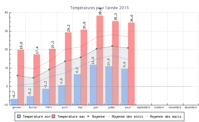 | aout | 9.6 °C | 14.8 °C | 34.6 °C | 27.0 °C | 20.8 °C | 1.7 km/h | 39.5 km/h | O |